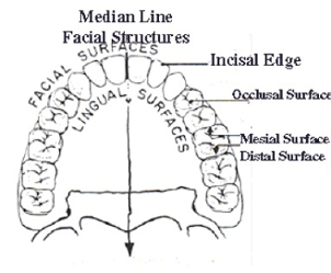 • Mesial Surface – the median line, or the middle of the tooth